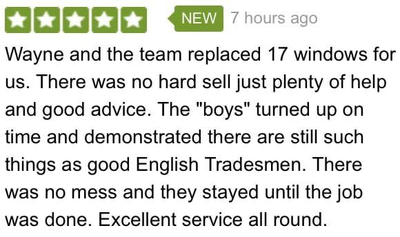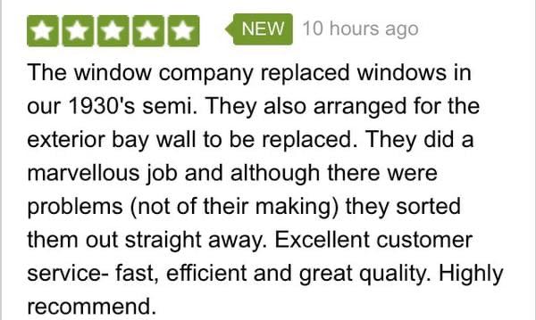 Two customers were so happy with our service that they have provided glowing reviews for the company after their respective jobs were completed. The team had provided seventeen windows for a household in Culcheth in which the service was noted as “excellent” and that the job was completed tidily and well done.