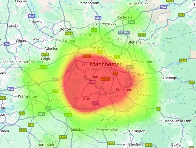 We’ve also completed jobs further out into Stockport, Cheadle and Wilmslow, across to Eccles and Prestwich, and out north towards Rochdale. Every shaded area on the map represents a street we’ve worked on and a customer who trusted us with their home improvements.